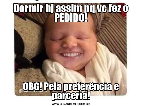 Dormir hj assim pq vc fez o PEDIDO! OBG! Pela preferência e parceria!