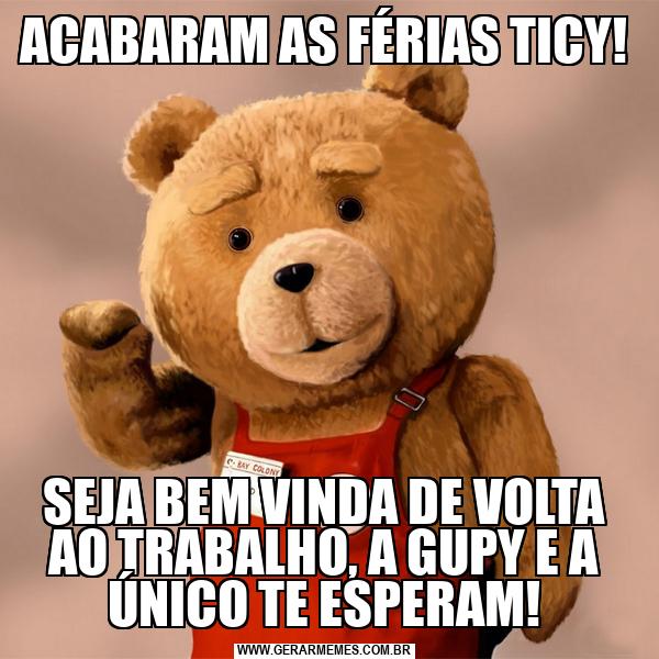 ACABARAM AS FÉRIAS TICY! SEJA BEM VINDA DE VOLTA AO TRABALHO, A GUPY E A ÚNICO TE ESPERAM!