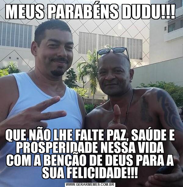 MEUS PARABÉNS DUDU!!! QUE NÃO LHE FALTE PAZ, SAÚDE E PROSPERIDADE NESSA VIDA COM A BENÇÃO DE DEUS PARA A SUA FELICIDADE!!!