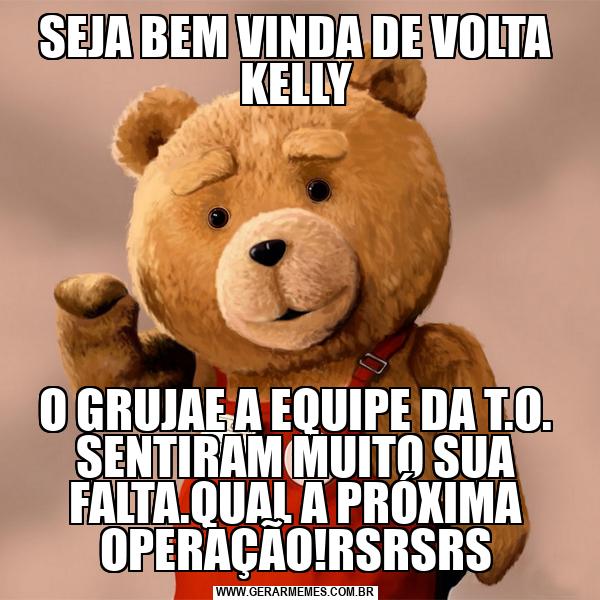 SEJA BEM VINDA DE VOLTA KELLY O GRUJAE A EQUIPE DA T.O. SENTIRAM MUITO SUA FALTA.QUAL A PRÓXIMA OPERAÇÃO!RSRSRS