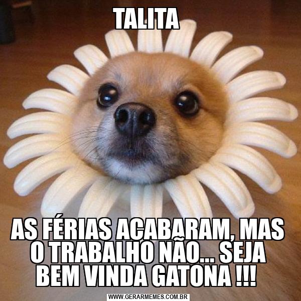 TALITA AS FÉRIAS ACABARAM, MAS O TRABALHO NÃO... SEJA BEM VINDA GATONA !!!