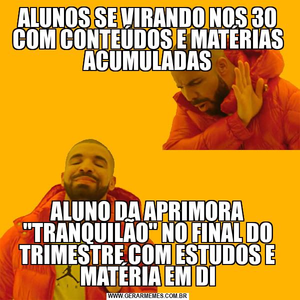 ALUNOS SE VIRANDO NOS 30 COM CONTEÚDOS E MATÉRIAS ACUMULADAS ALUNO DA APRIMORA "TRANQUILÃO" NO FINAL DO TRIMESTRE COM ESTUDOS E MATÉRIA EM DI