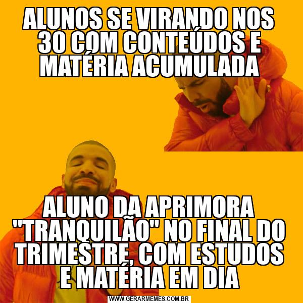 ALUNOS SE VIRANDO NOS 30 COM CONTEÚDOS E MATÉRIA ACUMULADA ALUNO DA APRIMORA "TRANQUILÃO" NO FINAL DO TRIMESTRE, COM ESTUDOS E MATÉRIA EM DIA