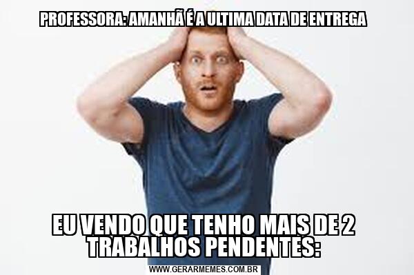 PROFESSORA: AMANHÃ É A ULTIMA DATA DE ENTREGA EU VENDO QUE TENHO MAIS DE 2 TRABALHOS PENDENTES: