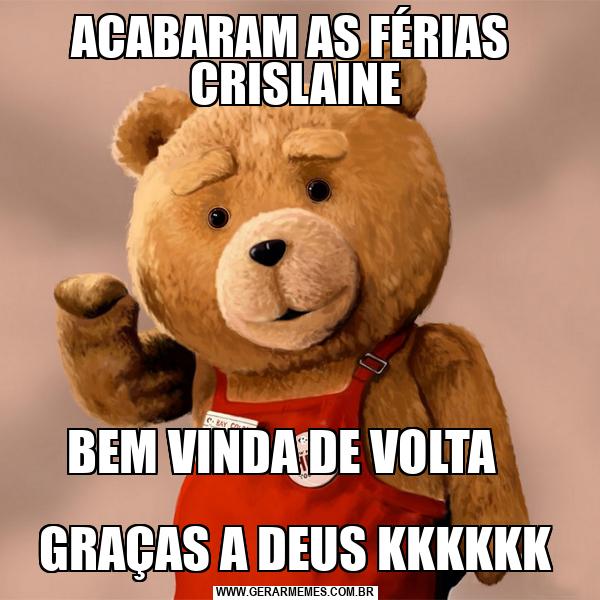 ACABARAM AS FÉRIAS CRISLAINE BEM VINDA DE VOLTA GRAÇAS A DEUS KKKKKK
