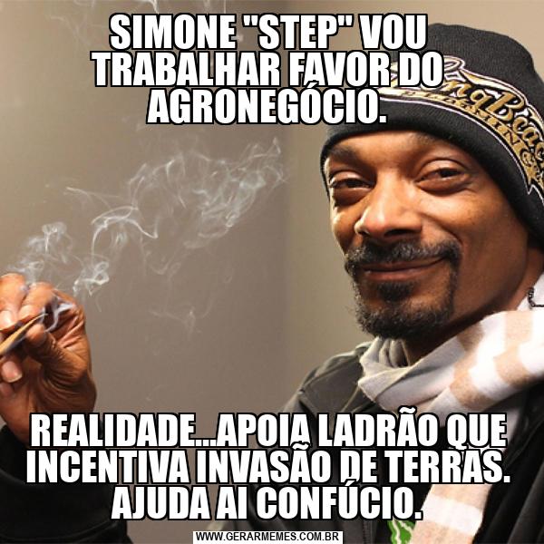 SIMONE "STEP" VOU TRABALHAR FAVOR DO AGRONEGÓCIO. REALIDADE...APOIA LADRÃO QUE INCENTIVA INVASÃO DE TERRAS. AJUDA AI CONFÚCIO.