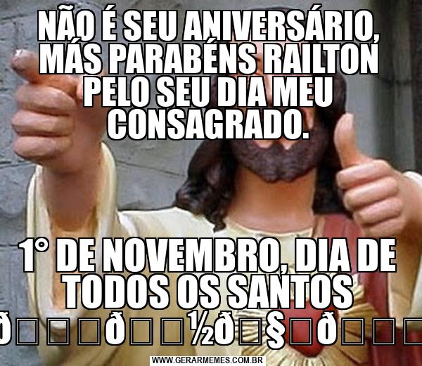 NÃO É SEU ANIVERSÁRIO, MÁS PARABÉNS RAILTON PELO SEU DIA MEU CONSAGRADO. 1° DE NOVEMBRO, DIA DE TODOS OS SANTOS