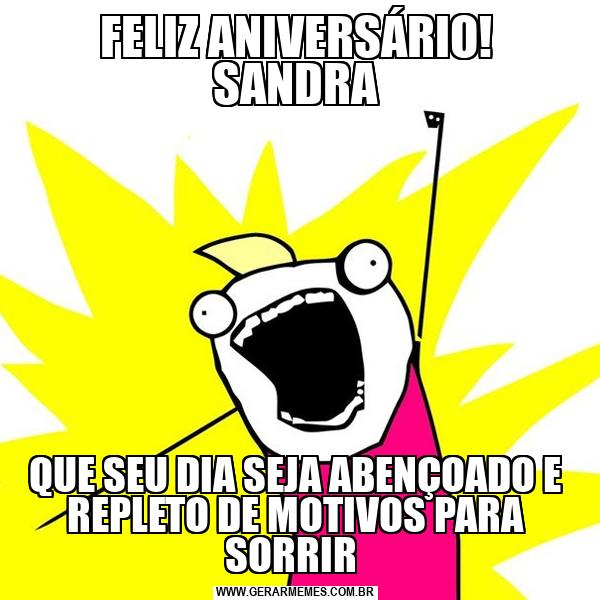 FELIZ ANIVERSÁRIO! SANDRA QUE SEU DIA SEJA ABENÇOADO E REPLETO DE MOTIVOS PARA SORRIR