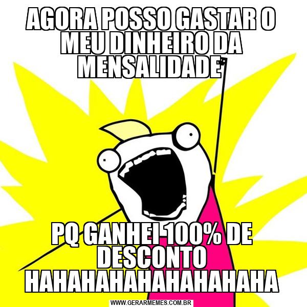 AGORA POSSO GASTAR O MEU DINHEIRO DA MENSALIDADE PQ GANHEI 100% DE DESCONTO HAHAHAHAHAHAHAHAHA