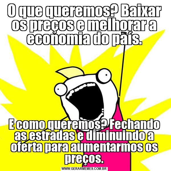 O que queremos? Baixar os preços e melhorar a economia do país. E como queremos? Fechando as estradas e diminuindo a oferta para aumentarmos os preços.