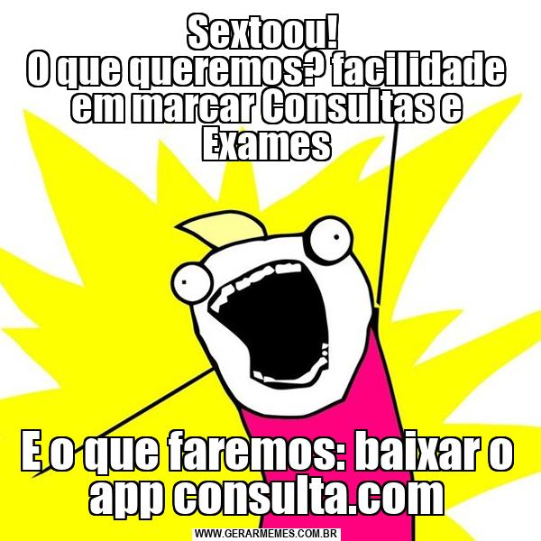 Sextoou! O que queremos? facilidade em marcar Consultas e Exames E o que faremos: baixar o app consulta.com