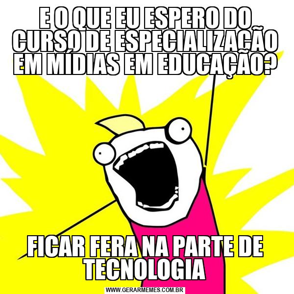 E O QUE EU ESPERO DO CURSO DE ESPECIALIZAÇÃO EM MÍDIAS EM EDUCAÇÃO? FICAR FERA NA PARTE DE TECNOLOGIA