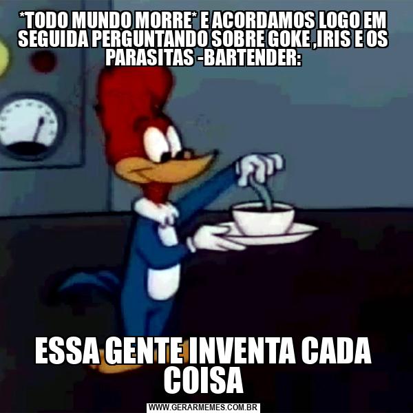 *TODO MUNDO MORRE* E ACORDAMOS LOGO EM SEGUIDA PERGUNTANDO SOBRE GOKE ,IRIS E OS PARASITAS -BARTENDER: ESSA GENTE INVENTA CADA COISA
