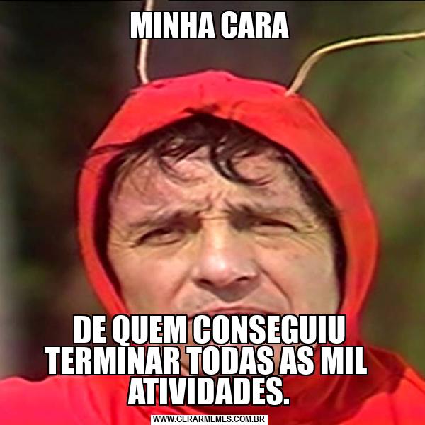 MINHA CARA DE QUEM CONSEGUIU TERMINAR TODAS AS MIL ATIVIDADES.