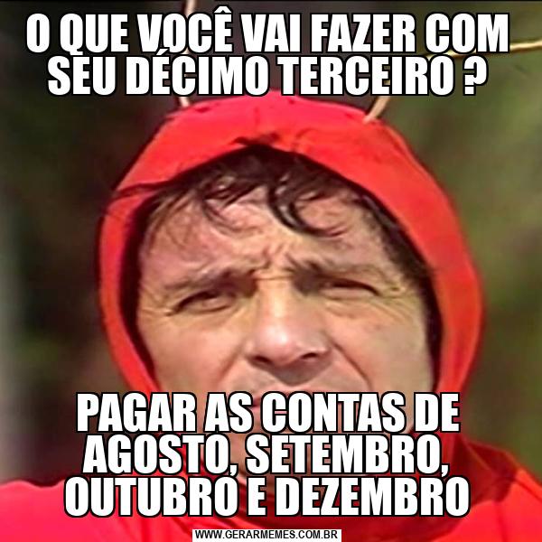 O QUE VOCÊ VAI FAZER COM SEU DÉCIMO TERCEIRO ? PAGAR AS CONTAS DE AGOSTO, SETEMBRO, OUTUBRO E DEZEMBRO