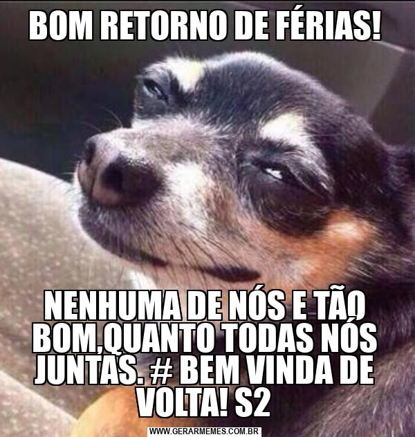 BOM RETORNO DE FÉRIAS! NENHUMA DE NÓS E TÃO BOM,QUANTO TODAS NÓS JUNTAS. # BEM VINDA DE VOLTA! S2