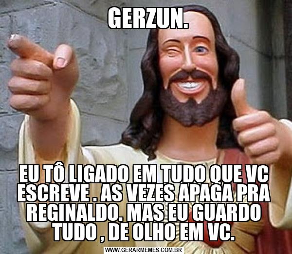GERZUN. EU TÔ LIGADO EM TUDO QUE VC ESCREVE . AS VEZES APAGA PRA REGINALDO. MAS EU GUARDO TUDO , DE OLHO EM VC.