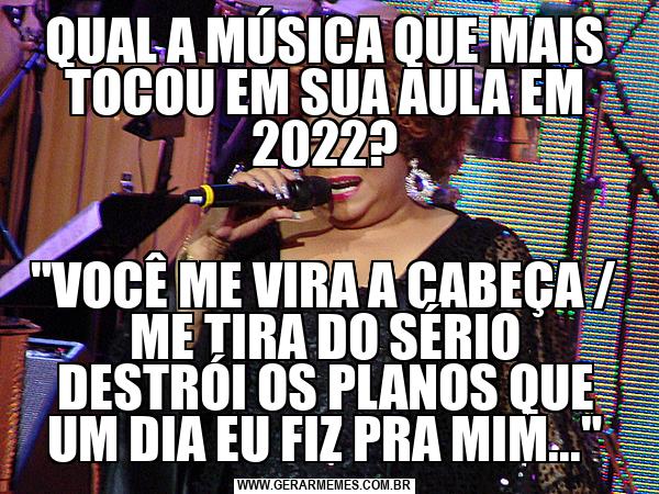 QUAL A MÚSICA QUE MAIS TOCOU EM SUA AULA EM 2022? "VOCÊ ME VIRA A CABEÇA / ME TIRA DO SÉRIO DESTRÓI OS PLANOS QUE UM DIA EU FIZ PRA MIM..."