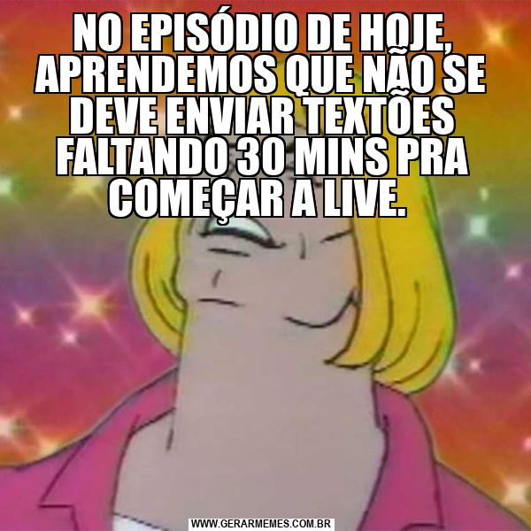 NO EPISÓDIO DE HOJE, APRENDEMOS QUE NÃO SE DEVE ENVIAR TEXTÕES FALTANDO 30 MINS PRA COMEÇAR A LIVE.