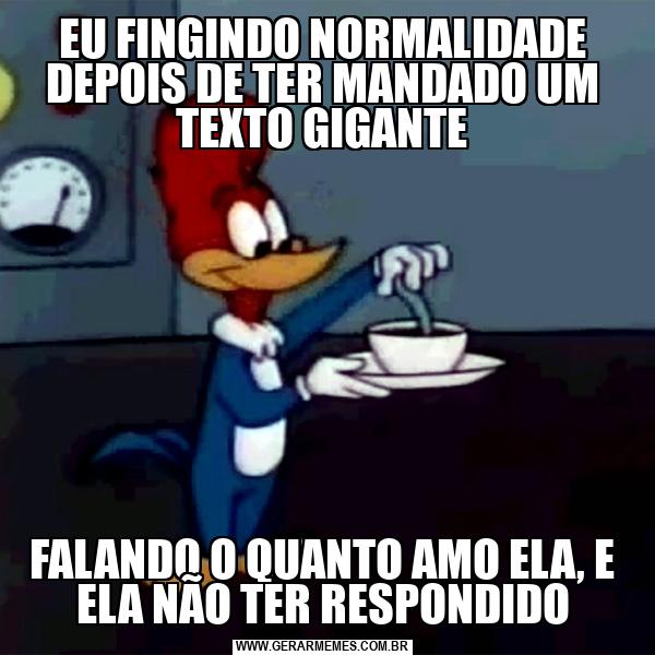 EU FINGINDO NORMALIDADE DEPOIS DE TER MANDADO UM TEXTO GIGANTE FALANDO O QUANTO AMO ELA, E ELA NÃO TER RESPONDIDO