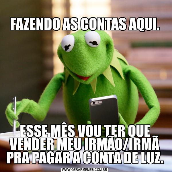 FAZENDO AS CONTAS AQUI. ESSE MÊS VOU TER QUE VENDER MEU IRMÃO/IRMÃ PRA PAGAR A CONTA DE LUZ.