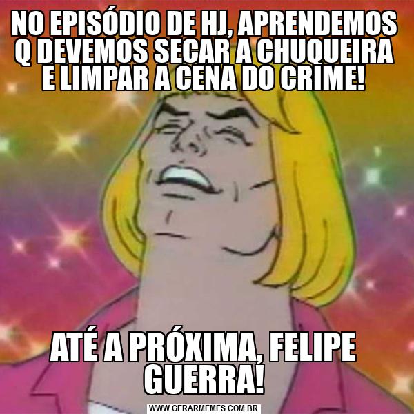 NO EPISÓDIO DE HJ, APRENDEMOS Q DEVEMOS SECAR A CHUQUEIRA E LIMPAR A CENA DO CRIME! ATÉ A PRÓXIMA, FELIPE GUERRA!
