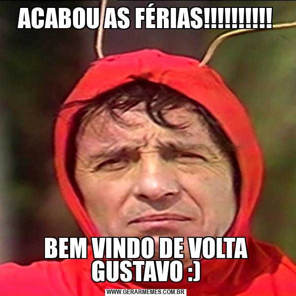 ACABOU AS FÉRIAS!!!!!!!!!! BEM VINDO DE VOLTA GUSTAVO :)