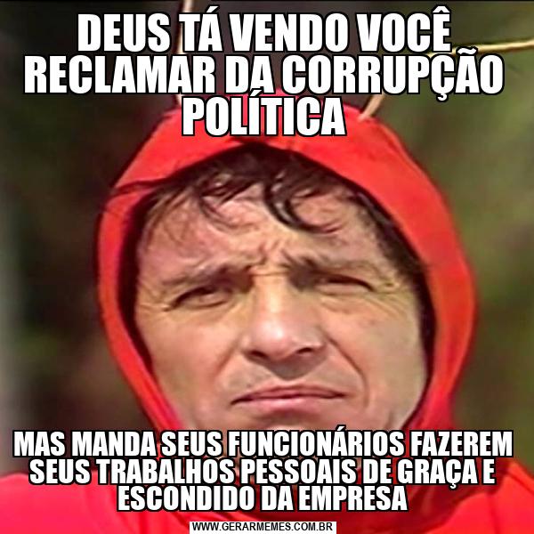 DEUS TÁ VENDO VOCÊ RECLAMAR DA CORRUPÇÃO POLÍTICA MAS MANDA SEUS FUNCIONÁRIOS FAZEREM SEUS TRABALHOS PESSOAIS DE GRAÇA E ESCONDIDO DA EMPRESA