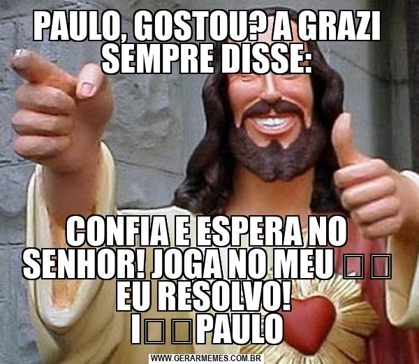 PAULO, GOSTOU? A GRAZI SEMPRE DISSE: CONFIA E ESPERA NO SENHOR! JOGA NO MEU ❤️ EU RESOLVO! I❤️PAULO