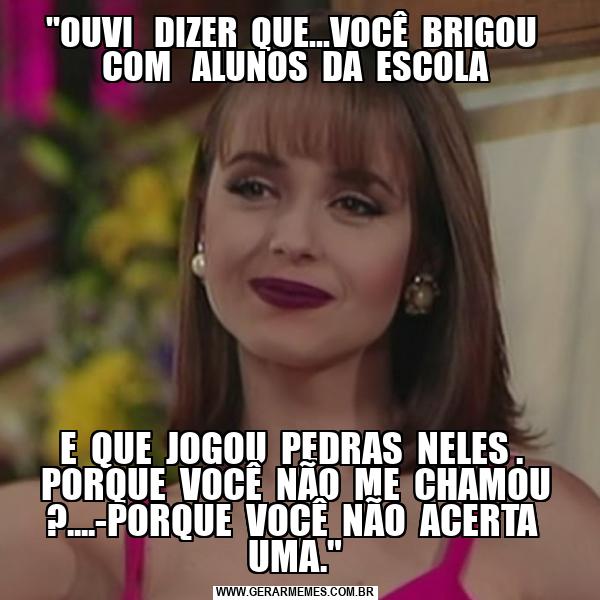 "OUVI DIZER QUE...VOCÊ BRIGOU COM ALUNOS DA ESCOLA E QUE JOGOU PEDRAS NELES . PORQUE VOCÊ NÃO ME CHAMOU ?....-PORQUE VOCÊ NÃO ACERTA UMA."