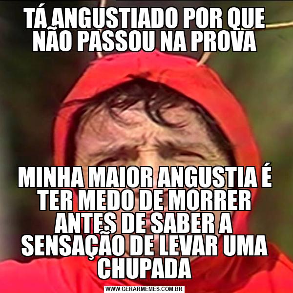 TÁ ANGUSTIADO POR QUE NÃO PASSOU NA PROVA MINHA MAIOR ANGUSTIA É TER MEDO DE MORRER ANTES DE SABER A SENSAÇÃO DE LEVAR UMA CHUPADA