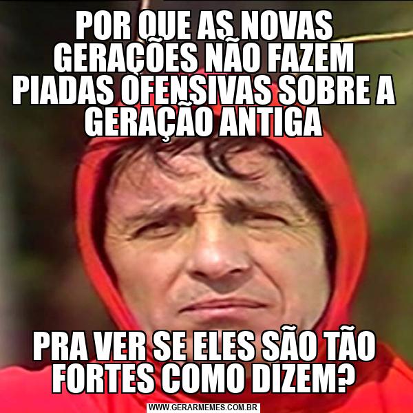 POR QUE AS NOVAS GERAÇÕES NÃO FAZEM PIADAS OFENSIVAS SOBRE A GERAÇÃO ANTIGA PRA VER SE ELES SÃO TÃO FORTES COMO DIZEM?