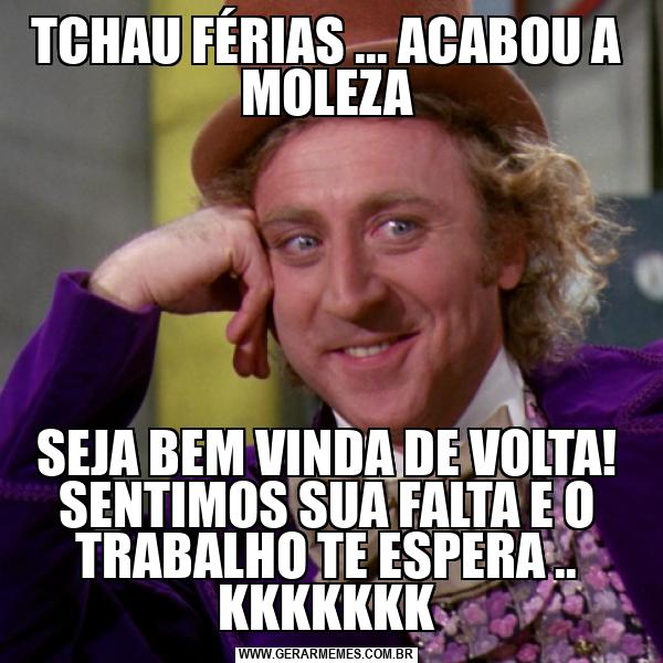 TCHAU FÉRIAS ... ACABOU A MOLEZA SEJA BEM VINDA DE VOLTA! SENTIMOS SUA FALTA E O TRABALHO TE ESPERA .. KKKKKKK