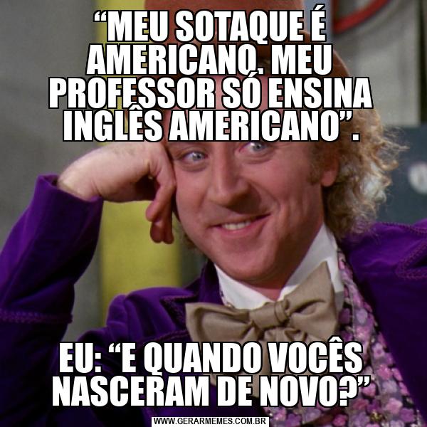 “MEU SOTAQUE É AMERICANO. MEU PROFESSOR SÓ ENSINA INGLÊS AMERICANO”. EU: “E QUANDO VOCÊS NASCERAM DE NOVO?”