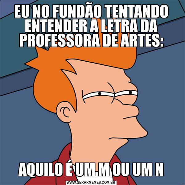 EU NO FUNDÃO TENTANDO ENTENDER A LETRA DA PROFESSORA DE ARTES: AQUILO É UM M OU UM N
