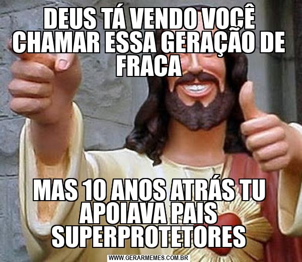 DEUS TÁ VENDO VOCÊ CHAMAR ESSA GERAÇÃO DE FRACA MAS 10 ANOS ATRÁS TU APOIAVA PAIS SUPERPROTETORES