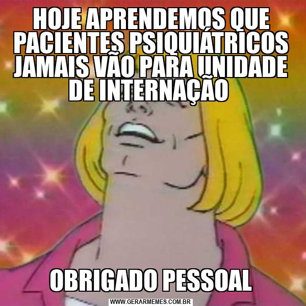 HOJE APRENDEMOS QUE PACIENTES PSIQUIÁTRICOS JAMAIS VÃO PARA UNIDADE DE INTERNAÇÃO OBRIGADO PESSOAL