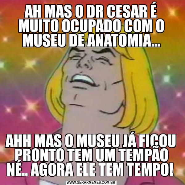 AH MAS O DR CESAR É MUITO OCUPADO COM O MUSEU DE ANATOMIA… AHH MAS O MUSEU JÁ FICOU PRONTO TEM UM TEMPÃO NÉ.. AGORA ELE TEM TEMPO!