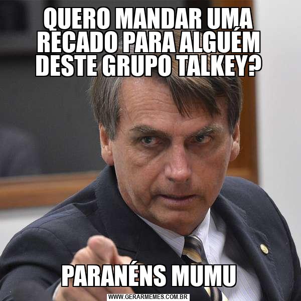QUERO MANDAR UMA RECADO PARA ALGUÉM DESTE GRUPO TALKEY? PARANÉNS MUMU