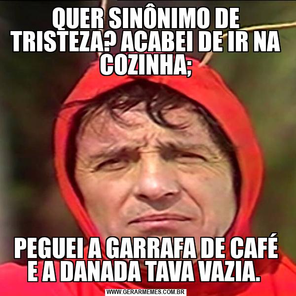 QUER SINÔNIMO DE TRISTEZA? ACABEI DE IR NA COZINHA; PEGUEI A GARRAFA DE CAFÉ E A DANADA TAVA VAZIA.