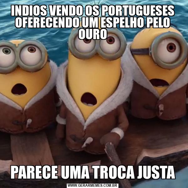 INDIOS VENDO OS PORTUGUESES OFERECENDO UM ESPELHO PELO OURO PARECE UMA TROCA JUSTA