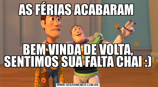 AS FÉRIAS ACABARAM BEM VINDA DE VOLTA, SENTIMOS SUA FALTA CHAI :)
