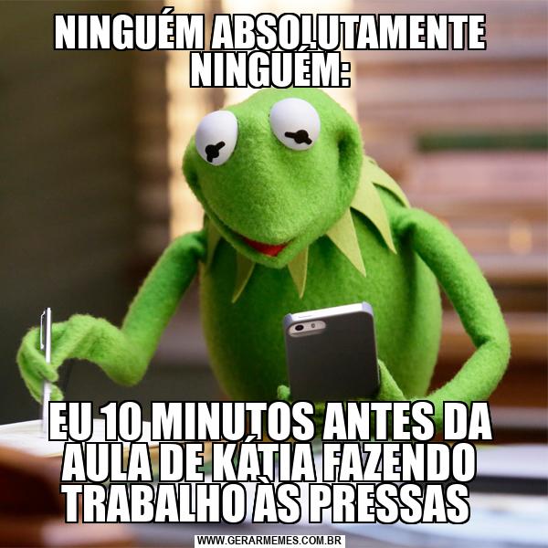 NINGUÉM ABSOLUTAMENTE NINGUÉM: EU 10 MINUTOS ANTES DA AULA DE KÁTIA FAZENDO TRABALHO ÀS PRESSAS