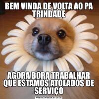 BOM DIA, FLOR DO DIA! SENTIMOS SUA FALTA, ENFIM, FIM DE FÉRIAS E ACABOU A MAMATA DE ATESTADO, E BORÁ QUE SEU TRABALHO ESTÁ MUITO ACUMULADO KKK...