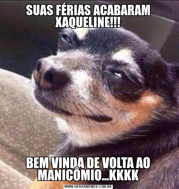 SUAS FÉRIAS ACABARAM XAQUELINE!!! BEM VINDA DE VOLTA AO MANICÔMIO...KKKK