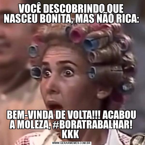VOCÊ DESCOBRINDO QUE NASCEU BONITA, MAS NÃO RICA: BEM-VINDA DE VOLTA!!! ACABOU A MOLEZA, #BORATRABALHAR! KKK
