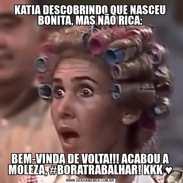 KATIA DESCOBRINDO QUE NASCEU BONITA, MAS NÃO RICA: BEM-VINDA DE VOLTA!!! ACABOU A MOLEZA, #BORATRABALHAR! KKK ♥