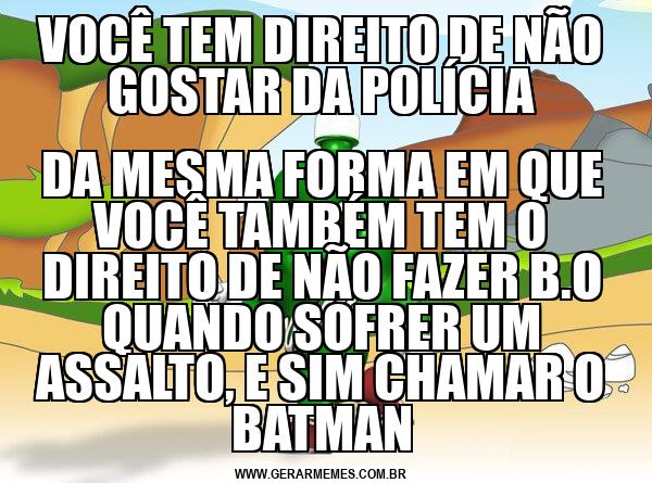 VOCÊ TEM DIREITO DE NÃO GOSTAR DA POLÍCIA DA MESMA FORMA EM QUE VOCÊ TAMBÉM TEM O DIREITO DE NÃO FAZER B.O QUANDO SOFRER UM ASSALTO, E SIM CHAMAR O BATMAN
