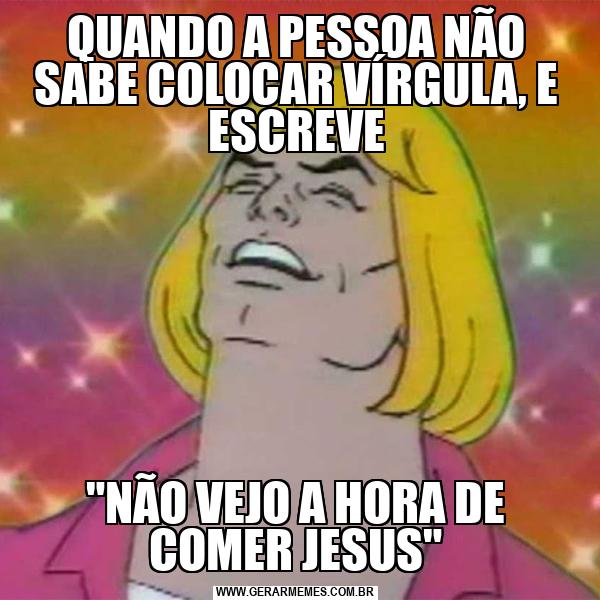 QUANDO A PESSOA NÃO SABE COLOCAR VÍRGULA, E ESCREVE "NÃO VEJO A HORA DE COMER JESUS"