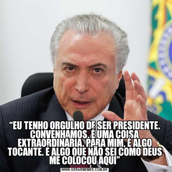 “EU TENHO ORGULHO DE SER PRESIDENTE. CONVENHAMOS, É UMA COISA EXTRAORDINÁRIA. PARA MIM, É ALGO TOCANTE. É ALGO QUE NÃO SEI COMO DEUS ME COLOCOU AQUI”